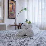 Gasten die verblijven in Finikoudes Gate Appartement kunnen genieten van het gemak van handdoeken in de badkamer.